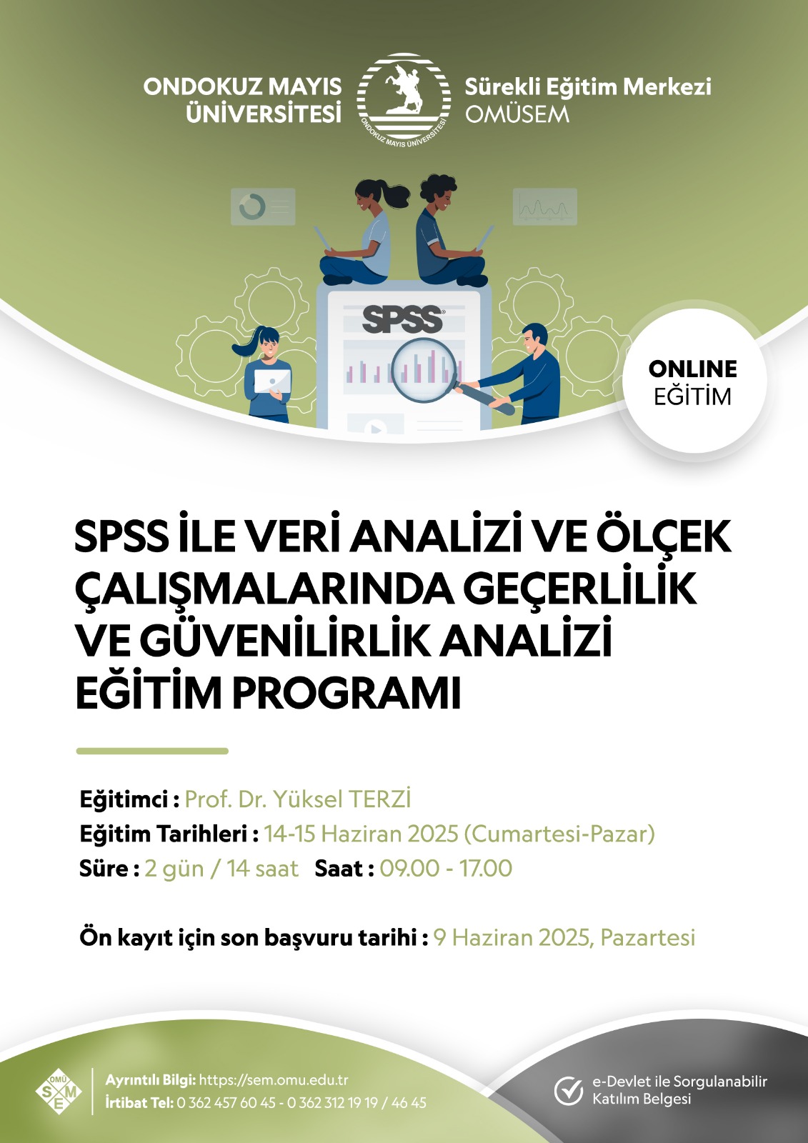 SPSS İLE VERİ ANALİZİ VE ÖLÇEK ÇALIŞMALARINDA GEÇERLİLİK VE GÜVENİLİRLİK ANALİZİ EĞİTİM PROGRAMI (ONLİNE EĞİTİM)