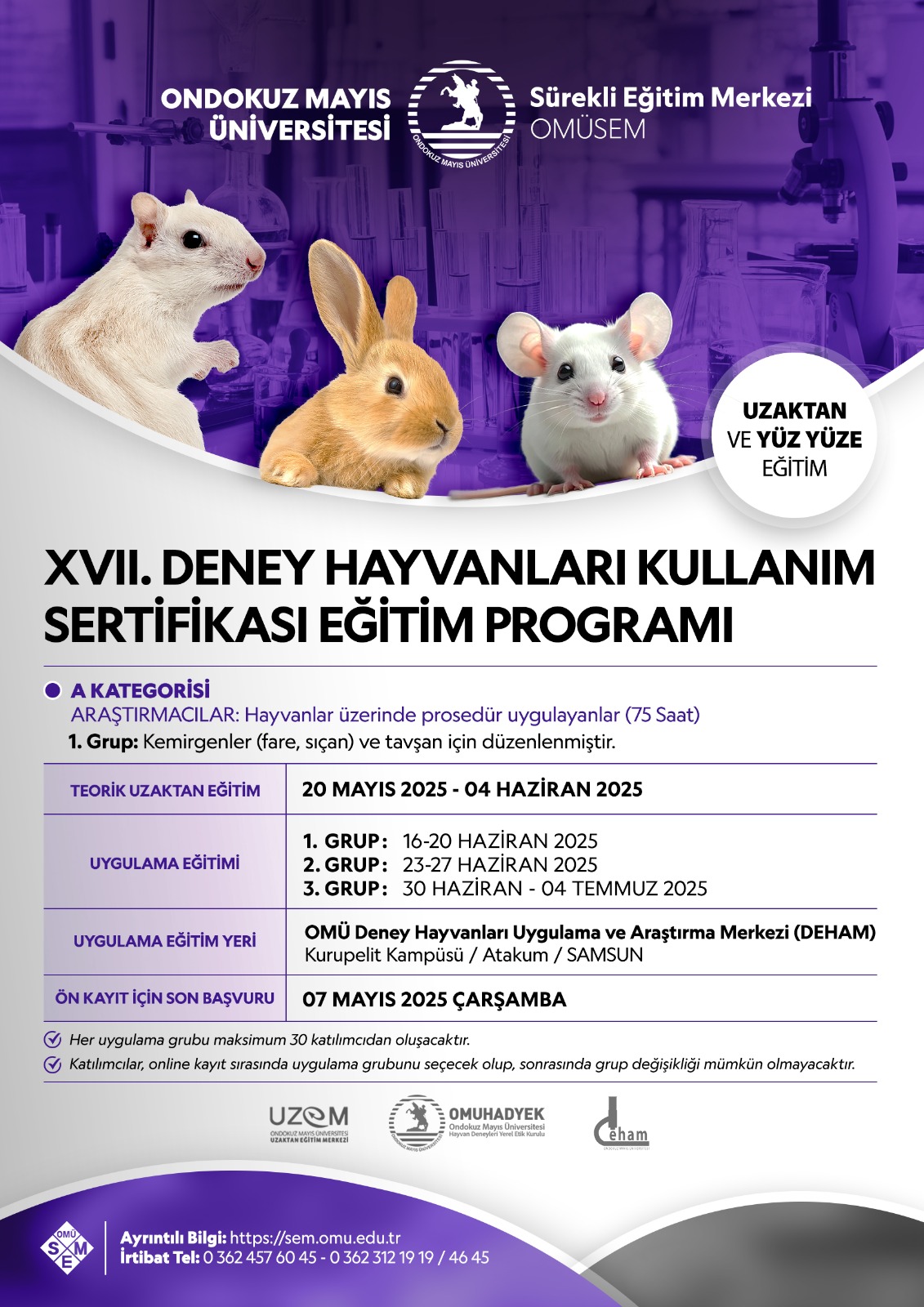 Uygulama Eğitimi Yeri: OMÜ Deney Hayvanları Uygulama ve Araştırma Merkezi (DEHAM)